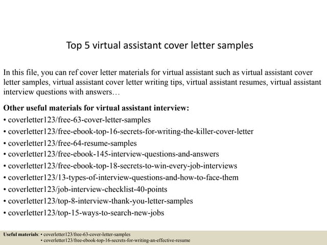 Virtual Assistant Resume Samples. Learn how to write a resume for virtual assistant jobs with top examples, expert online personal assistant tips, and the best virtual assistant Resume Examples See perfect resume samples that get jobs. Below you'll find our how-to section that will guide you through each section of a Virtual Assistant resume.