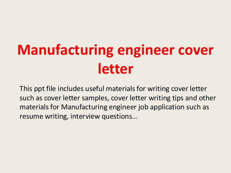 Manufacturing engineer cover letter