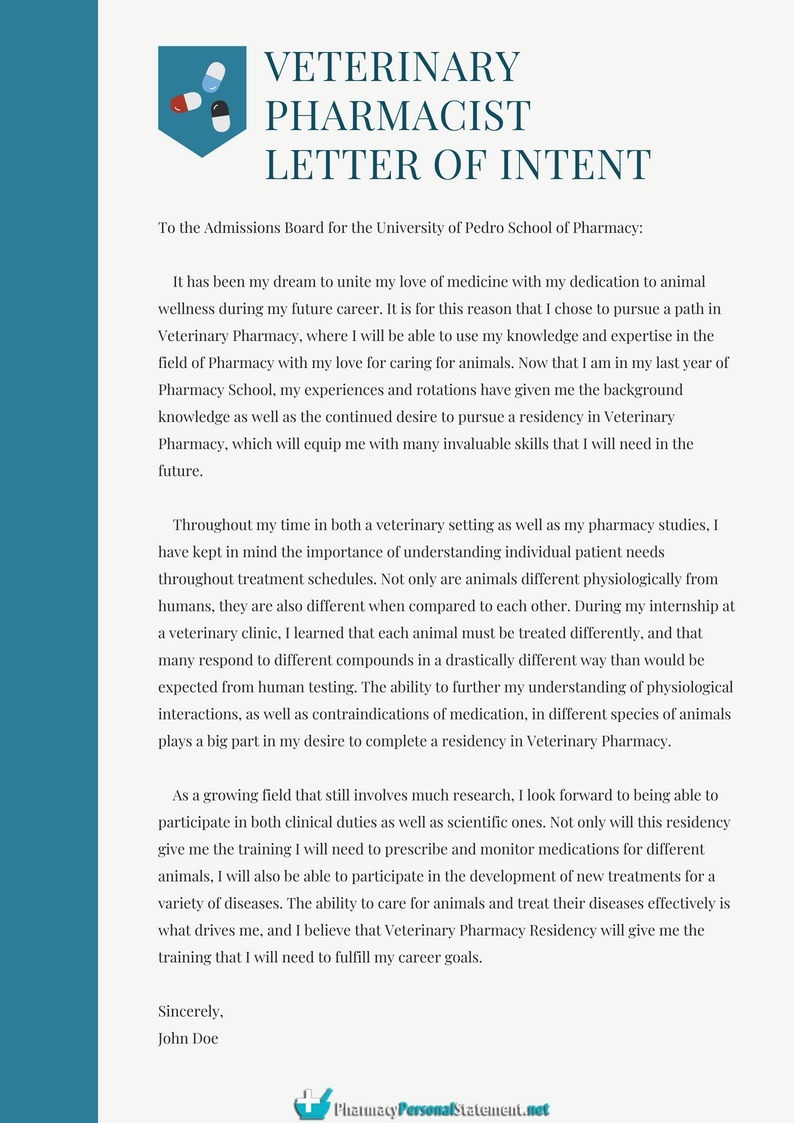 Veterinary Pharmacist Letter of Intent Sample